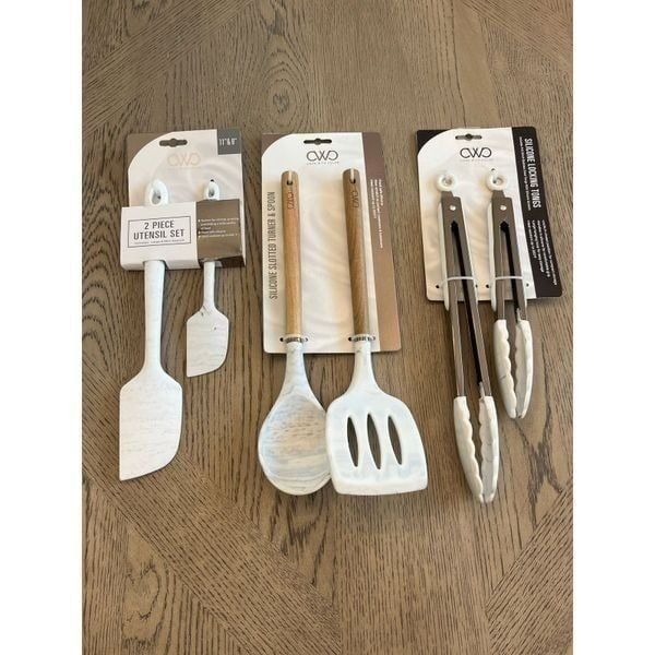 -Minis: 2 whisks, 2 all purpose spatulas, slotted Turner, 2 spoonulas, spoon, & 2 tongs